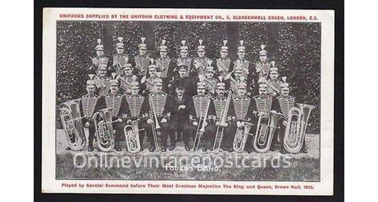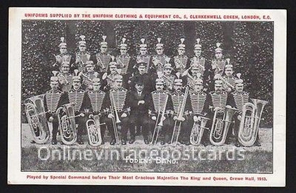 On the 23 April 1913 Foden's performed to King George V and Queen Mary by Royal Command. In 1912 new uniforms were purchased in a 'Prussian Style' from the “Uniform and Equipment Company of Clerkenwell Green, London” and worn for this performance.