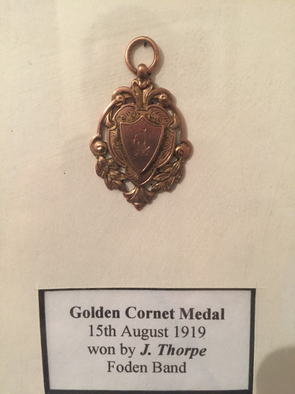 By 1936 Mr Thorpe had won over 160 Gold and Silver Medals and a number of Silver Challenge cups in various solo and quartet contests as well as being the winner of the Empire Solo Championship at Belle Vue, Manchester.
