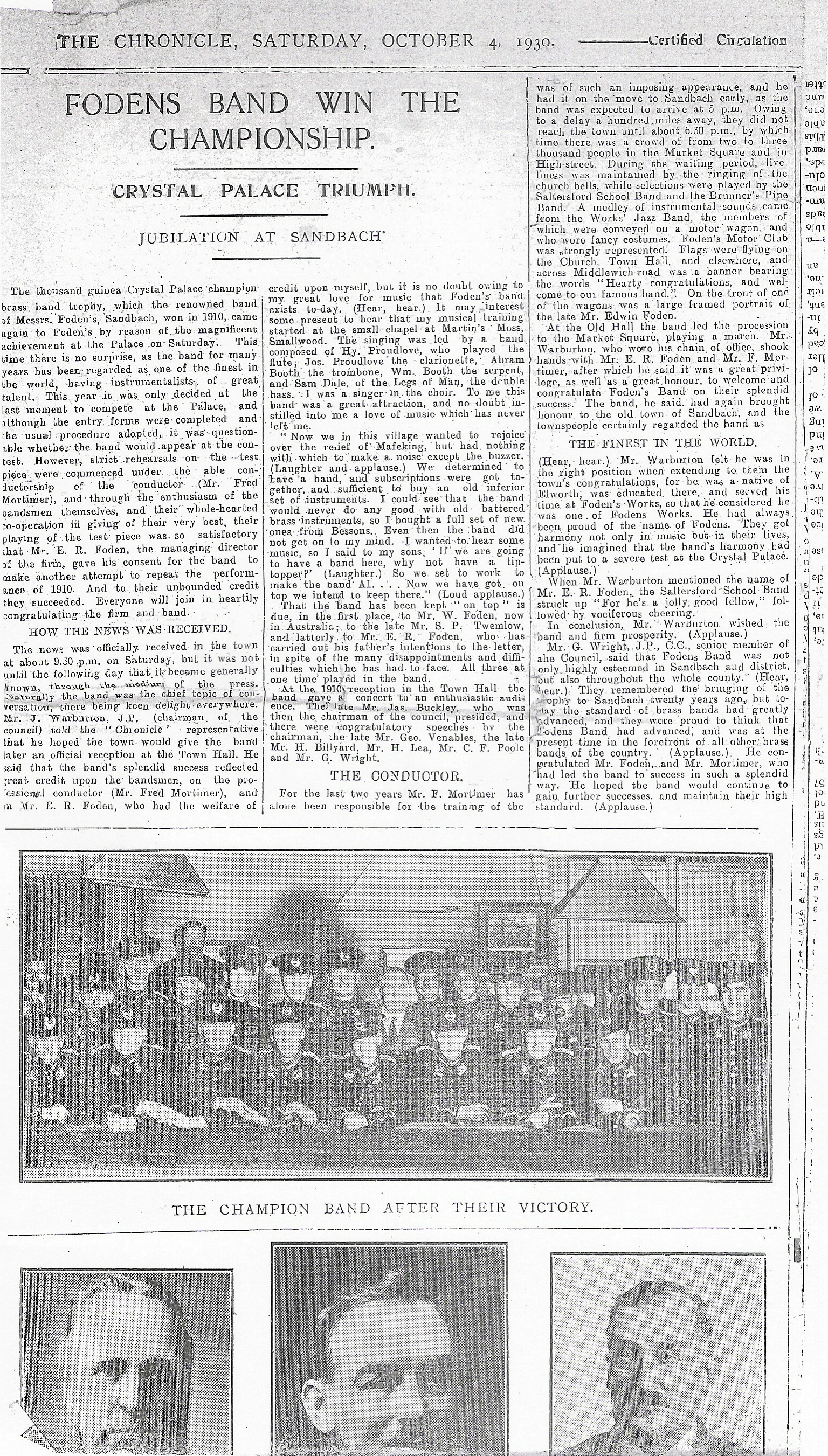 On the 27th September 1930 Foden's became the National Champions of Great Britain at Crystal Palace