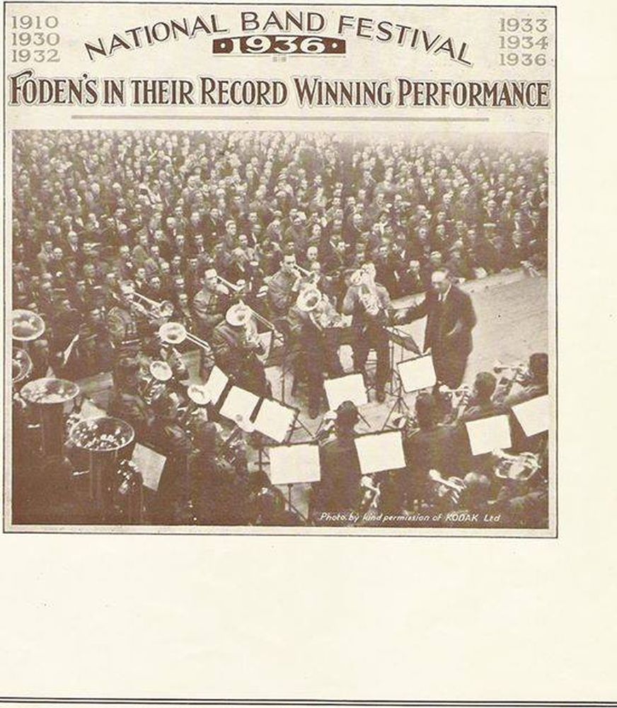 Photograph of Fodens Band performing the winning performance in the 1936 National Championships at Crystal Palace