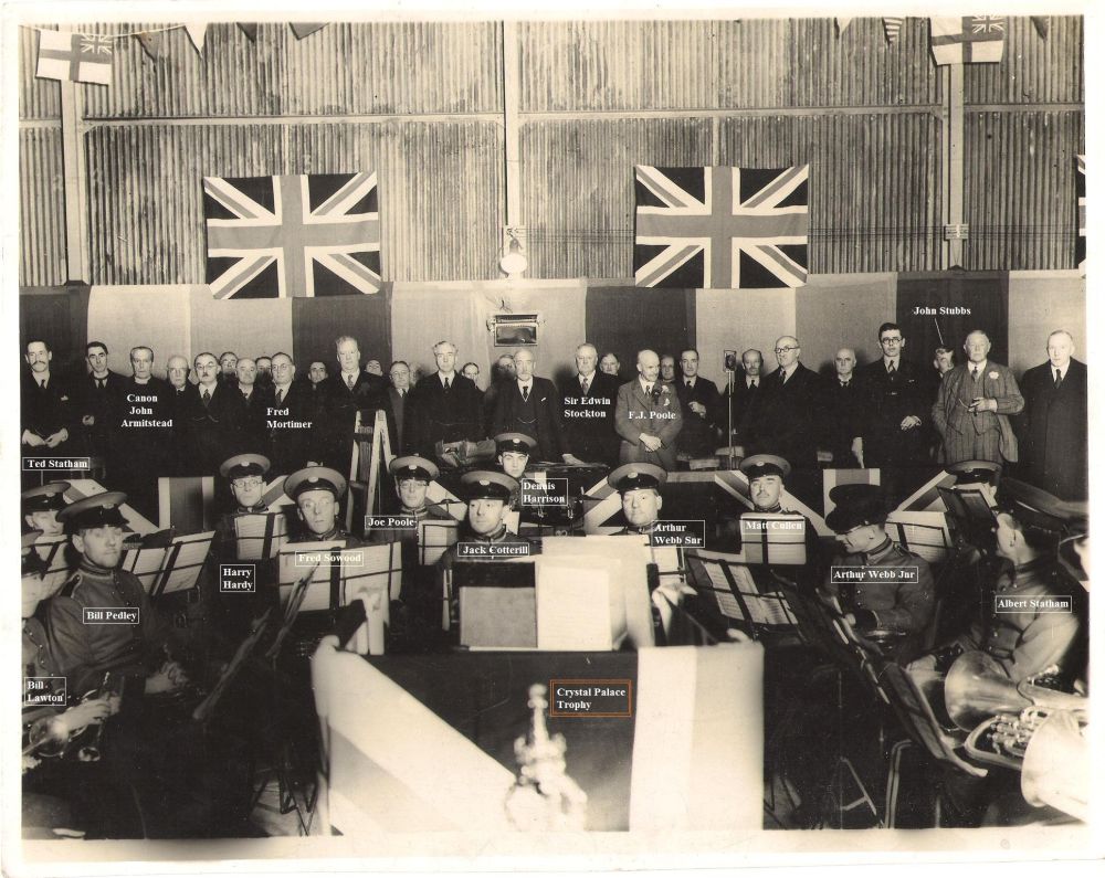 Crystal Palace Trophy and Medals Presentation by J.H. Iles Esq. to Edwin Stockton, Chairman Messrs. Fodens limited. Miss Amy Foden to decorate the Bandsmen.