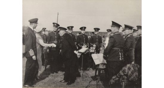 King George VI and Queen Elizabeth toured Crewe culminating at Crewe Alexandra Football Ground (Featured on Pathe News) where the band provided the musical entertainment. The Queen also toured other parts of the North West during her visit.