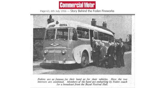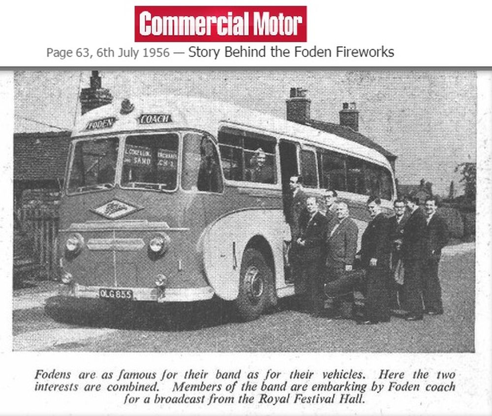 Article showing Foden Band members boarding a Fodens Coach on the way to a broadcast at the Royal Festival Hall