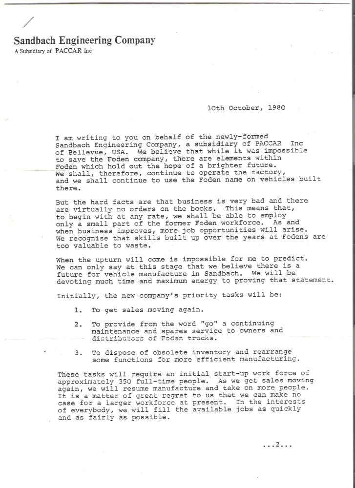 Letter to Fodens employees- Catalog No: FBA00047