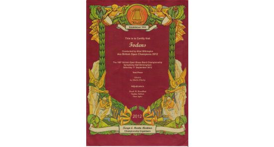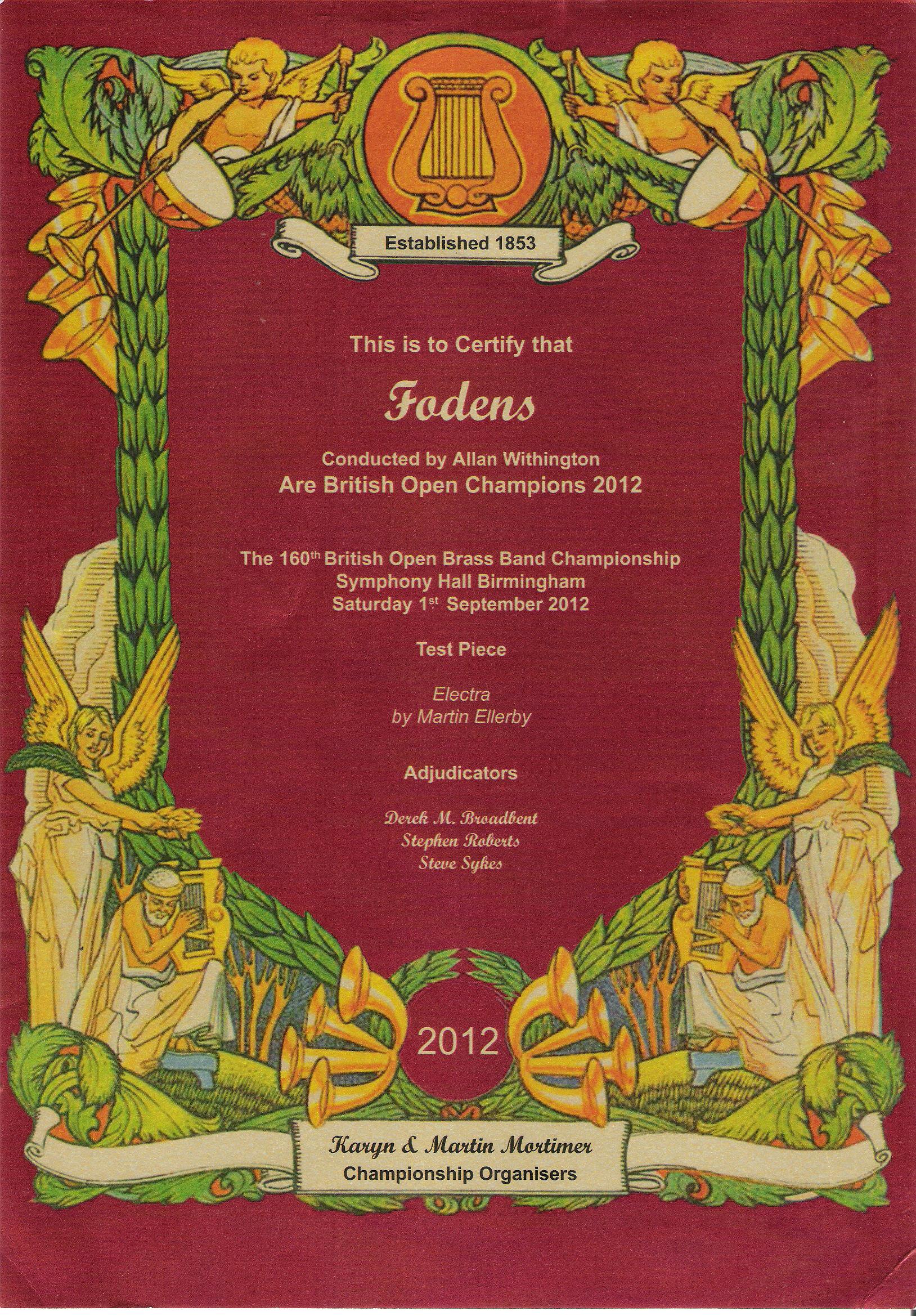 On the 1st September 2012 Foden's became the British Open Champions at the Symphony Hall, Birmingham