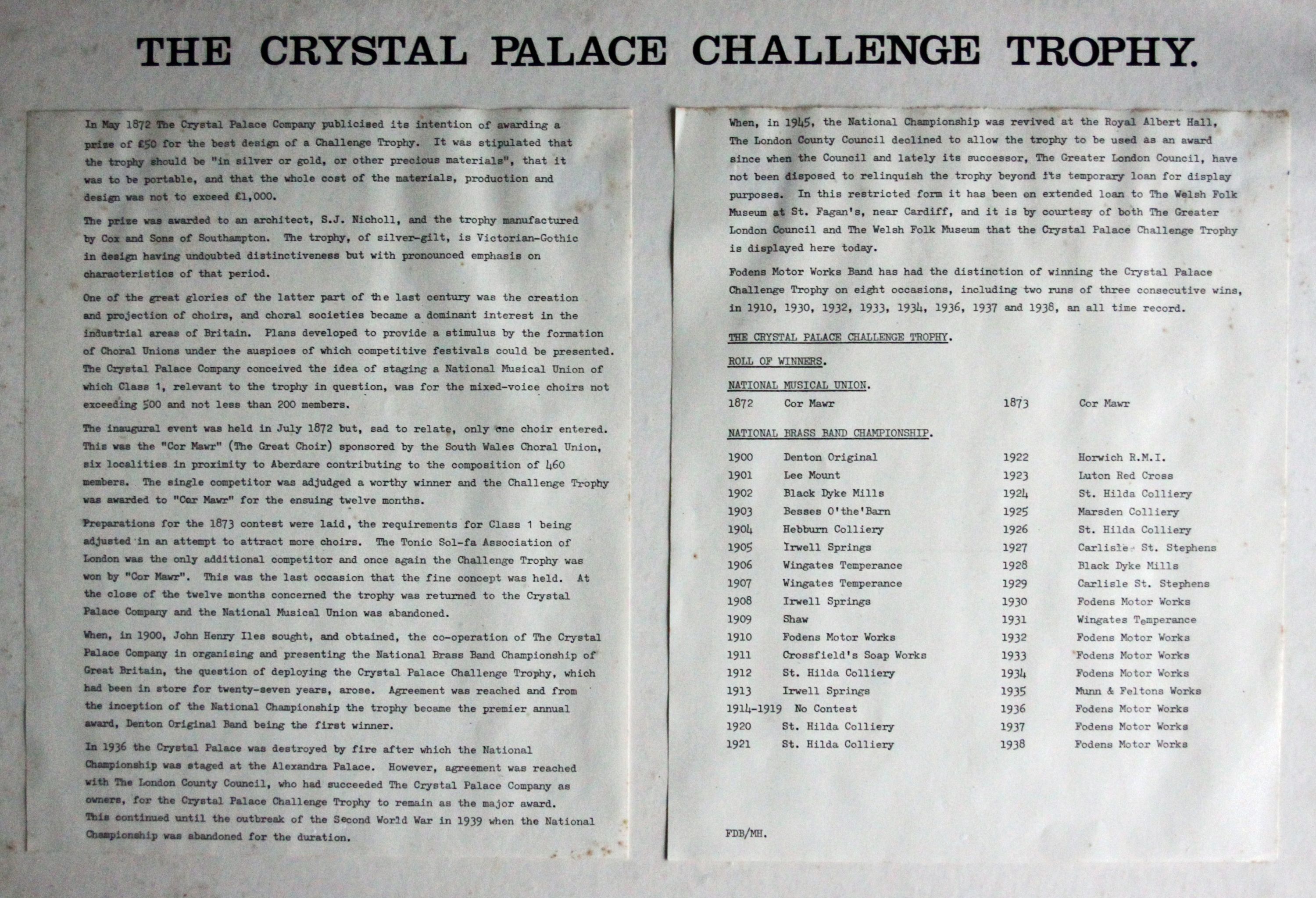 Information about the Crystal Palace Trophy which Foden's were recipients as part of their double hatrick victories in 1932, 33, 34, 36, 37, 38