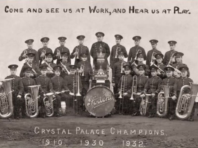 1916 Foden's employees wearing uniforms (that were withdrawn by the band in 1914)