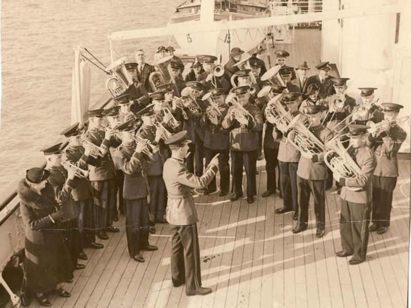 1936 Foden's Motor Works Band on ship to South Africa for a series of indoor concerts (December)