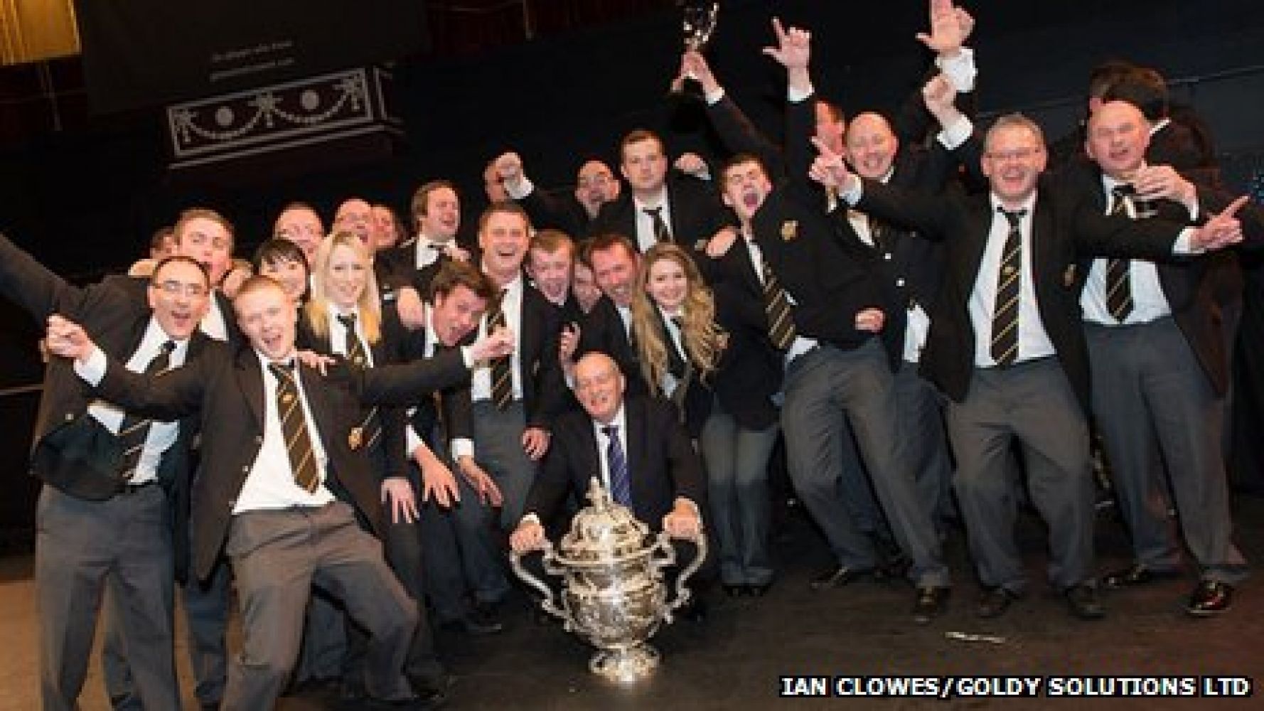 1953 Foden's Motor Works Band after winning the National Championship. Test Piece 'Diadem of Gold'